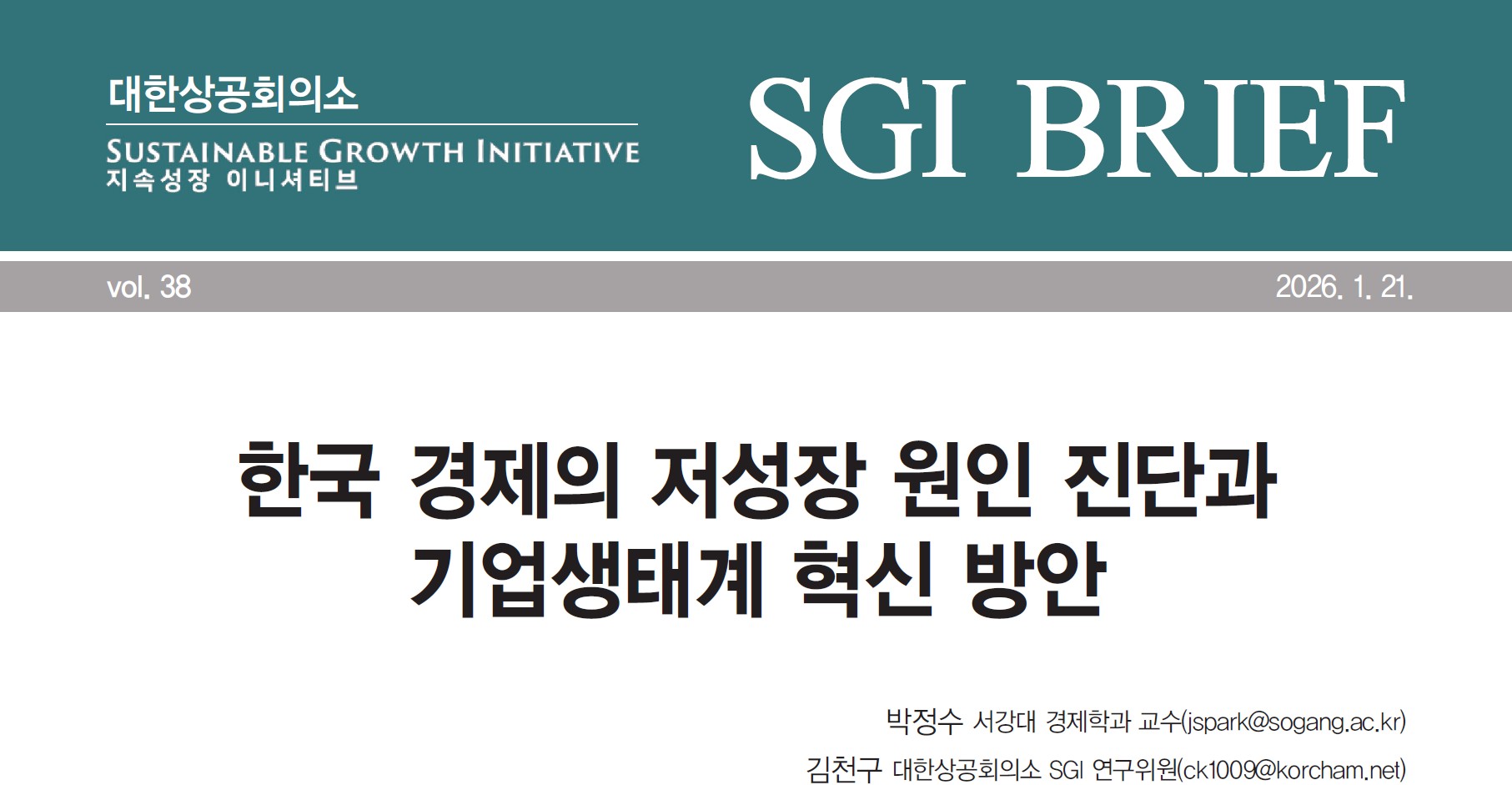 기업이 성장하여 고용을 늘릴수록 혜택은 끊기고 규제와 조세 부담은 눈덩이처럼 불어나는 한국 특유의‘성장 페널티(Growth Penalty)’가 국내 경제 성장 잠재력을 저해한다는 주장이 제기 되었다. 대한상공회의소 SGI(지속성장이니셔티브)는 20일 발표한‘한국 경제의 저성장 원인 진단과 기업생 태계 혁신 방안(박정수·김천구)’보고서에서“국내 기업들이 50인, 300인 등 규제 장벽 앞에서 인위적으로 성장을 멈추거나 기업을 쪼개는 등 규제 회피를 위한‘안주 전략(Bunching)’을 택하고 있다”고 지적했다.